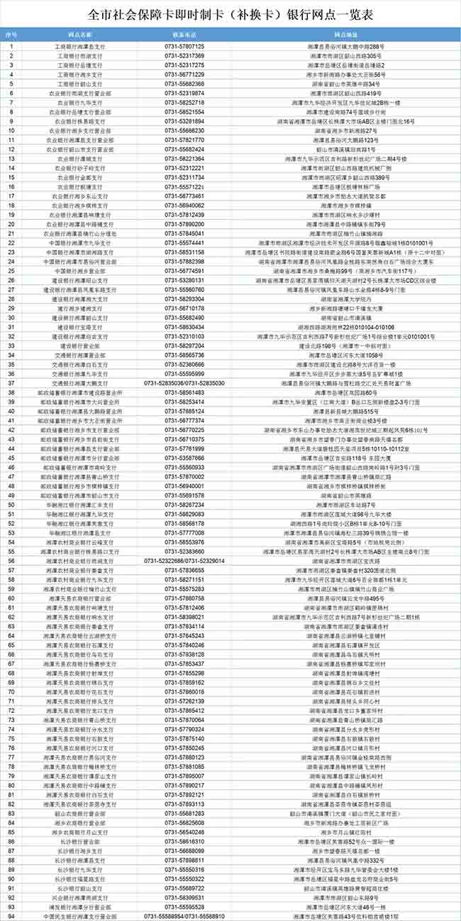 附:全市社會保障卡即時制卡(補換卡)銀行網(wǎng)點一覽表